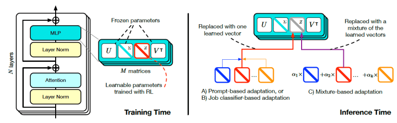 The researchers also developed a novel technique called Singular Value Finetuning (SVF). During training, SVF learns a set of “z-vectors” from the SVD components of the model that represent individual skills. Z-vectors act like knobs that can amplify or dampen the model’s ability in specific tasks.