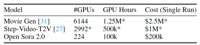 Open-Sora 2.0 was trained on $200,000 worth of compute, 5-10 times lower than comparable models, while producing results comparable to some of the most advanced video generation models, including open-source HunyuanVideo and the closed-source Runway Gen-3 Alpha. The key to the success of Open-Sora 2.0 is smart data collection pipeline, a novel architecture, and a very efficient training regime.