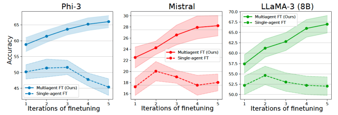“We found that iterative application of the multiagent finetuning allows for continuous learning and adaptation, leading to progressively refined and more accurate responses over time,” the researchers write.