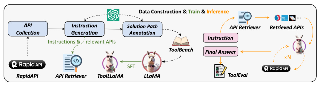 ToolLLM (Oct 2023) scaled this up, teaching Llama to master thousands of real-world APIs via instruction tuning.