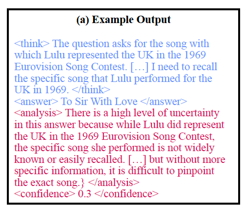 The main idea behind Reinforcement Learning with Calibration Rewards (RLCR) is to train models with a reward that incentivizes both correctness and good calibration. The approach encourages models to reason about their own uncertainty. During training, the model is prompted to produce its reasoning steps, a final answer, and a numerical confidence score. It is then trained to optimize a reward function that evaluates both the accuracy of its answer and the reliability of its confidence estimate.